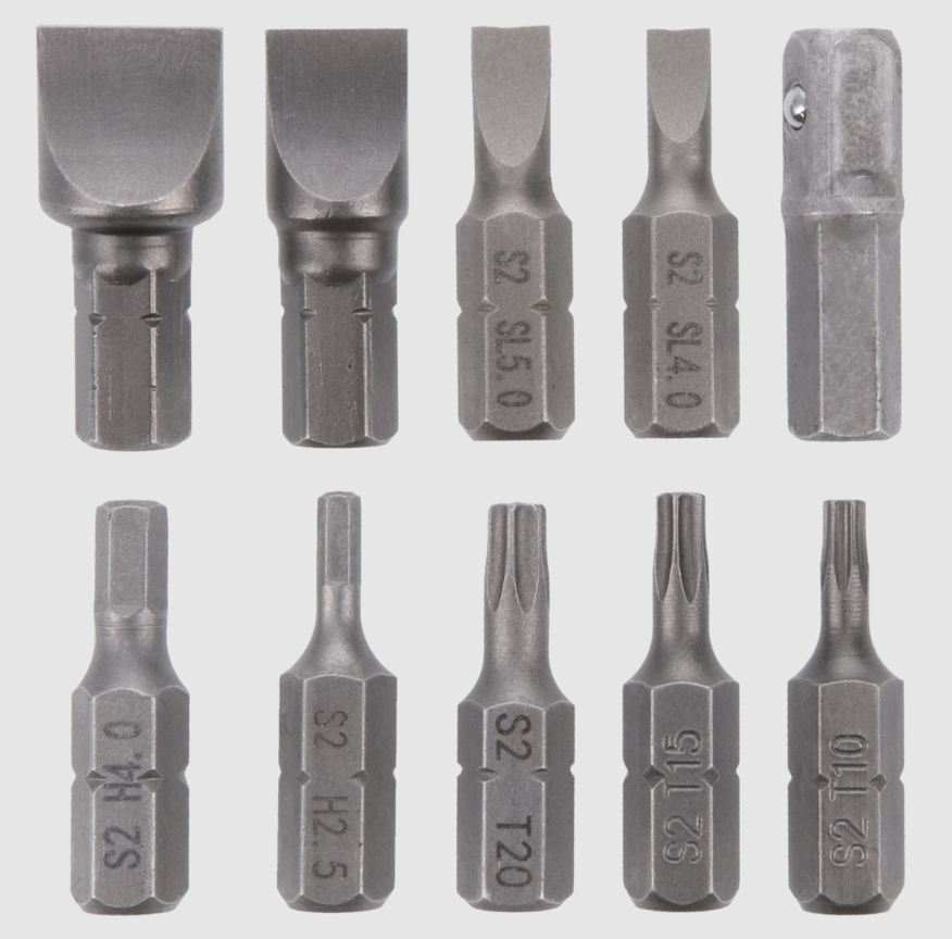 Multi-piece bit set (flat blade / torx / hex)
