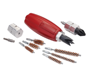 Includes: 3 dual-sided chucks; chamfer/deburr tools; large and small primer pocket cleaners; and neck brushes for the following calibers: 22 cal, 25 cal/6mm, 270 cal/7mm, 30 cal, 35 cal/9mm and 45 cal.