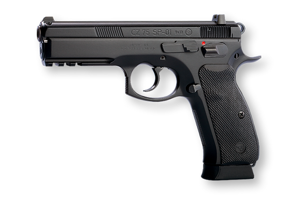 The CZ 75 SP-01 pistol is a big-size handgun designed for duty in law enforcement or military service, but also for target shooting or self defence having a large capacity double-column magazine holding 18 cartridges of cal. 9x19 and featuring classic DA firing mechanism (SA/DA). The pistol design is based on proved CZ 75 platform. Grip panels made of rubber are provided with checkerings. Long beavertail located at the upper portion of backstrap protects shooter's hand against the slide in its rearward movement and enables more deeper and secure grip. Newly shaped and robust frame made from steel and this handgun structural design provide long service life, accuracy and reliability even at demanding conditions and environments, which can be expected at the specialized units tasks fulfilment. The front portion of the pistol frame features integral light or laser rail of MIL-STD-1913 for the attachment not only of these devices. Sights are open and have squared configuration. Dots fitted into the rear sight and front sight are made of tritium luminescent inserts for aiming at poor visibility conditions. Thanks to its exceptional accuracy and easy target acquisition even in quick and repeated fire meant that the CZ 75 SP-01 pistol found its supporters also in the field of sport and target shooting events. CZ 75 SP-01 The safety of the hundgun is provided by automatic firing pin block and ambidextrous manual safety.